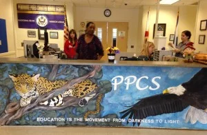 That is the welcoming mural featuring the school mascots of the jaguar and the eagle for Pembroke Pines Charter Middle School in Florida, a national Blue Ribbon School. These students (lower left) personify the campus mission of “Community, Character, and Challenging Curriculum.” A chance meeting with former Minnesota Lt. Governor Lou Wangberg (lower right) at Governor Al Quie’s 90th birthday party in September resulted in a visit with Lou at the high-performing Pembroke Pines Charter School System in Florida. Lou was a teacher for eight years in the high school of the first (and now largest) municipally-managed charter school system in the nation.